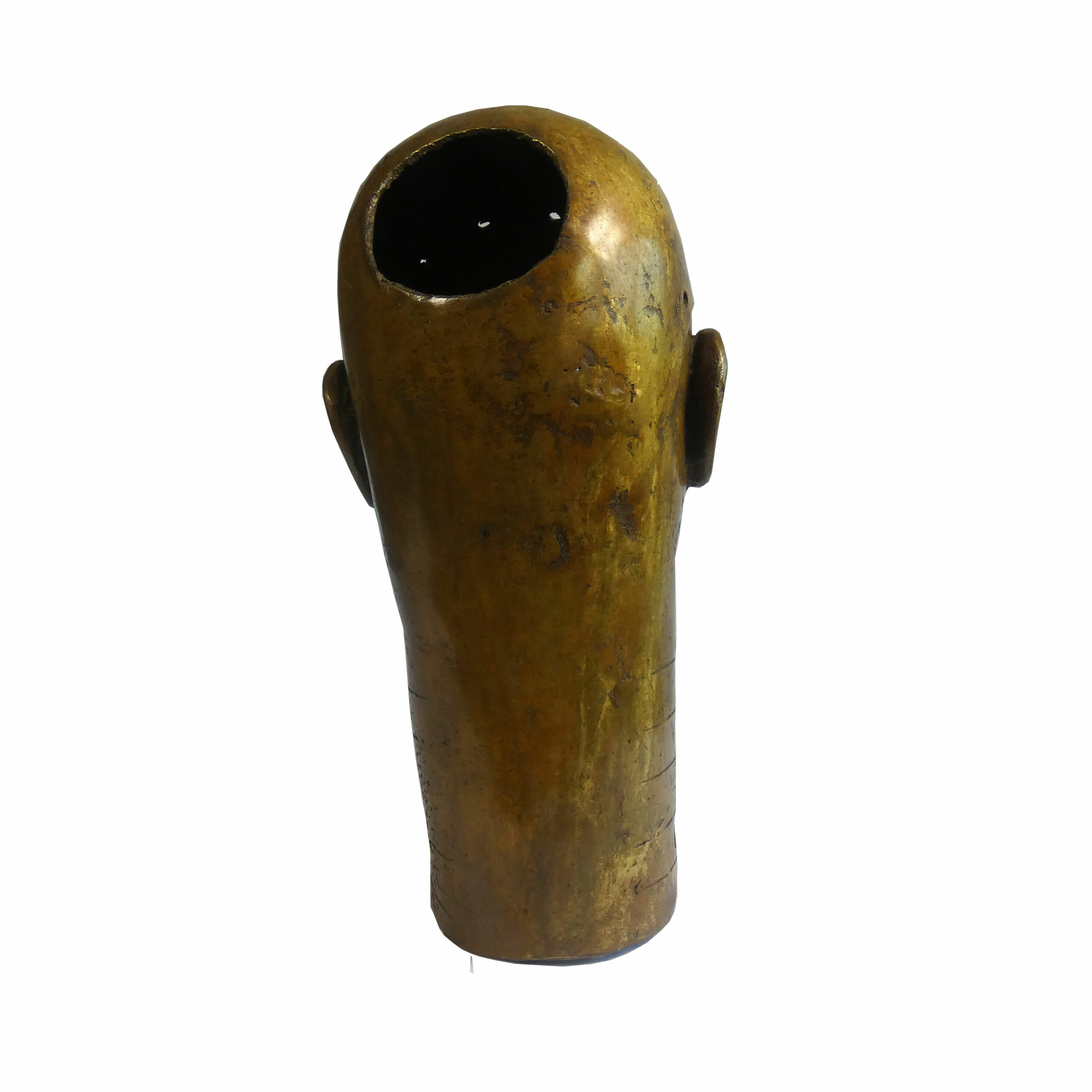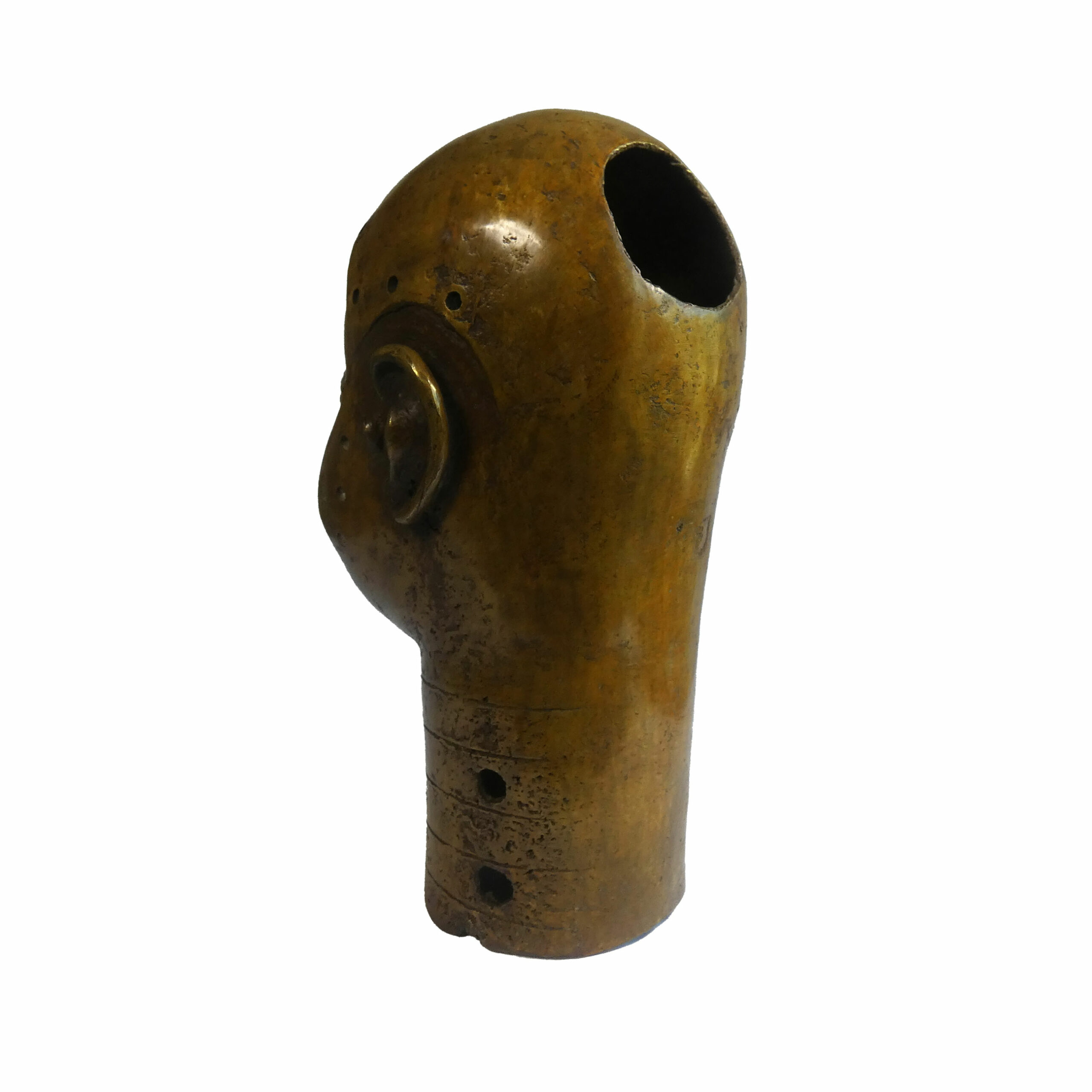This art piece associated with the Ife tribe of Nigeria, (West Africa) stylishly represents an Ife male. Made from bronze the sculptured bust is designed with detailing.