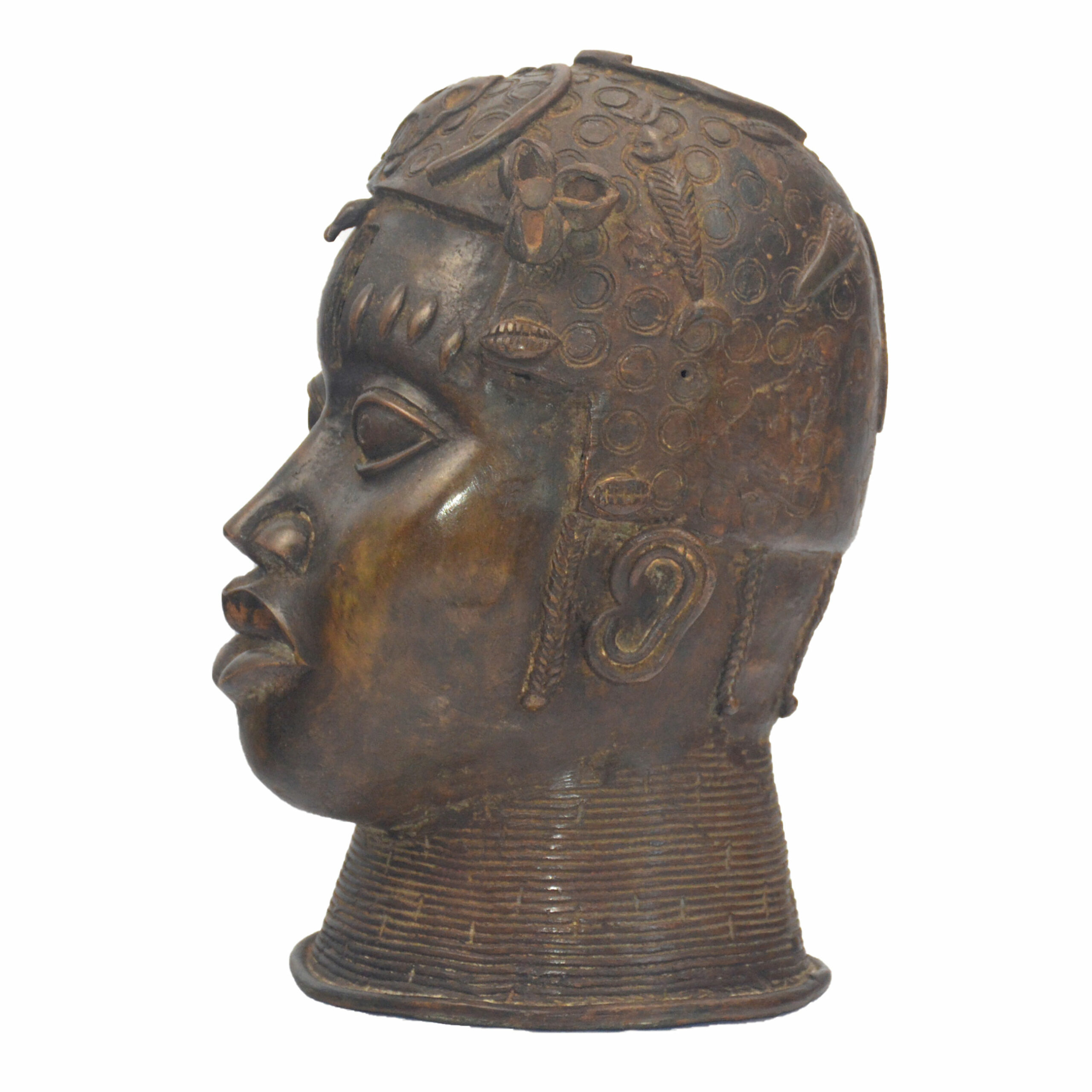 This bronze human head from the tribe of Ife of the ancient Yoruba kingdom / Benin kingdom is made entirely out of high-quality bronze (Lost Wax Casting).